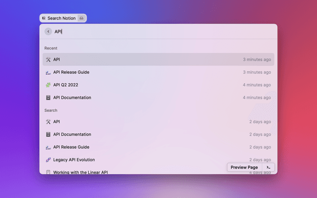 Search Notion pages and open visited ones faster. No admin access required.
