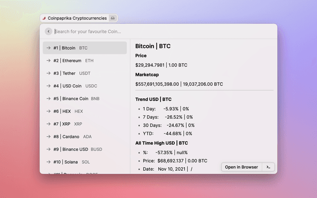 A Raycast extension that lets you easily check your favourite Coins on Coinpaprika.