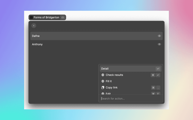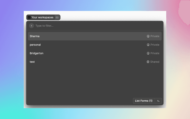 Explore your workspaces, list your form and get and overview of forms stats.